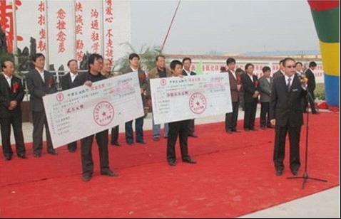 在開工儀式上,孫文還拿出2萬元資助了20名在校貧困大學(xué)生,拿出15萬元捐助其家鄉(xiāng)北李莊村小學(xué)發(fā)展基礎(chǔ)教育。